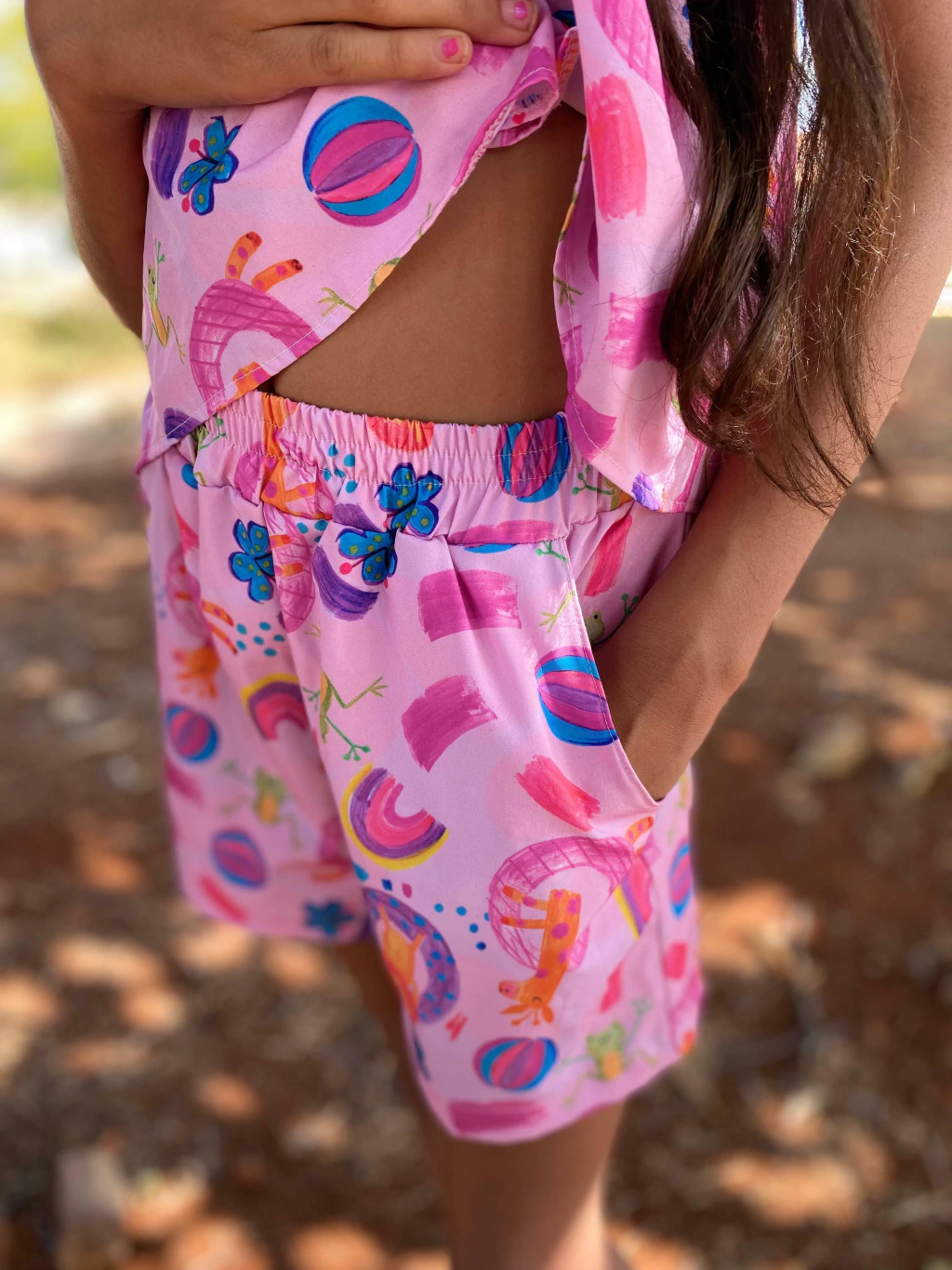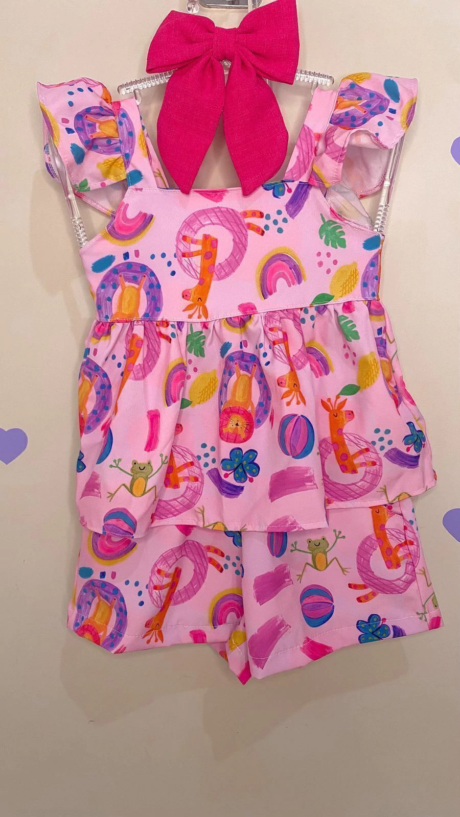 Deixe a alegria do verão brilhar no guarda-roupa da sua pequena com o Conjunto Encanto Rosa! Uma escolha que une praticidade, frescor e muita diversão!